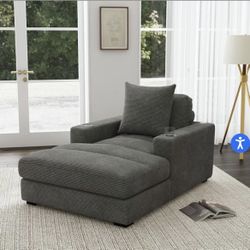 New Sofa CHAISE WITH 1 PILLOW 20IN ; 2 CUPHOLDERS AND 2 USB IN STENO CHARCOAL Or STENO BEIGE$600Addison, TX