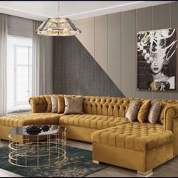 Ariana Velvet Mustard Double Chaise Sectional.