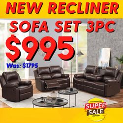 🚨 SALE 🚨 New In The Box 📦 Brown Leather Living Room Recliner Sofa Set 3pc - Delivery Available $995Dallas, TX