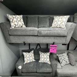 New In The Box 📦 Black And Grey Leather Living Room Sofa Set 3pc - Delivery Available $895Dallas, TX