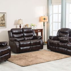 New In The Box 📦 Recliner Leather Living Room Sofa Set 3pc - Delivery Available $1,295Dallas, TX