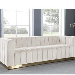 Meridian Furniture 603Cream-S Marlon Collection Modern | Contemporary Velvet Upholstered Sofa with Deep Channel Tufting, Stainless Steel Base in a Bru$999Dallas, TX