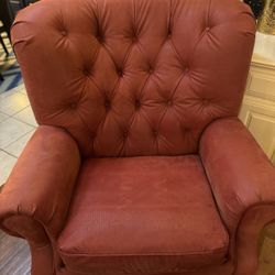 Red embossed faux leather tufted chair, like new! $215Plano, TX