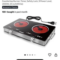 Karinear 2 Burners Electric Cooktop 110v, Portable Electric Stove top 24 Inch Countertop Burner, Radiant Ceramic Cooktop, Sensor Touch, Timer, Safety $80Grand Prairie, TX