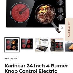 Karinear 24 Inch 4 Burner Knob Control Electric Ceramic Cooktop$150Grand Prairie, TX