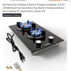 Karinear Gas Cooktop 2 Burner Propane Cooktop, 12 Inch LPG/NG Dual Fuel Gas Stove Top, Built-in Tempered Glass Gas Cooktop for Apartment, Indoor, RV$80Grand Prairie, TX
