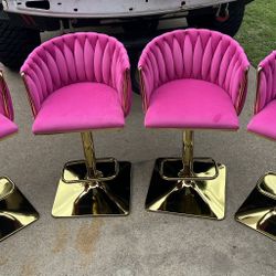 Modern Velvet Swivel Bar Stools Set of 4, Hand Woven Backrest, Comfy Adjustable Counter Height Barstools with Gold Square Base for Counter, Kitchen Is$300Grand Prairie, TX