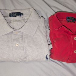 2pc polo Ralph Lauren polos 1 vintage light gray polo navy blue pony and 1 red polo navy blue polo both are Men's XL$20Dallas, TX