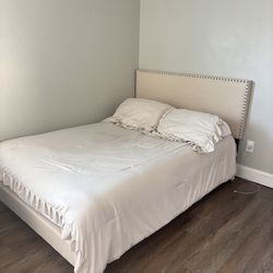 White suede and gold trim queen bed frame and mattress$210Dallas, TX