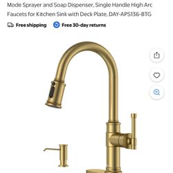 DAYONE Brushed Gold/Brass Pull Down Kitchen Faucet with 3-Mode Sprayer and Soap Dispenser, Single Handle High Arc Faucets for Kitchen Sink with Deck P$80Grand Prairie, TX