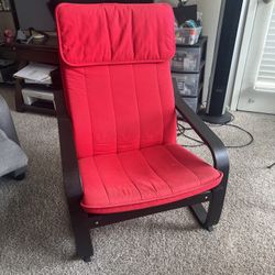 Modern Floor Lounge Chair – Red Cushion, Sleek Wood Frame$50Irving, TX