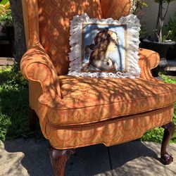Burnt Terracotta 🧡 Chippendale Style Upholstered Wingback Chair$150Garland, TX