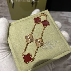 Rose Gold 4-Leaf Clover 🍀 Charm Bracelet – Red & Rose Motif – 7.5$80Mckinney, TX