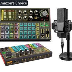 New K300 Podcast Equipment Bundle, With Podcast Condenser Microphone, Voice Changer Sound Card with Multiple Sound Effects and LED Light, Prefect for $40Red Oak, TX