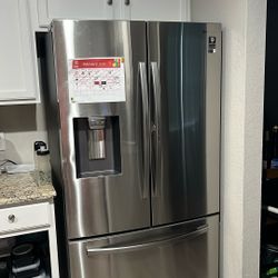 Samsung refrigerator french door stainless with water and ice dispenser dimensions 68 7/8 height 35 7/8 width 32 depth in excellent working condition $645Euless, TX
