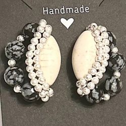 Stud Earrings With Snowflake Jasper And Frosted Silver Hematite$25Flower Mound, TX