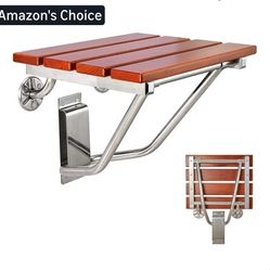 2530: New Teak Wood Folding Shower Seat and Bench, Wall Mounted, 350lb Capacity, Foldable Shower Chair for Small Spaces