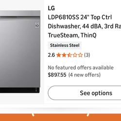 LG FlushFit 24-in Top Control Built-in Dishwasher ( Black Stainless Steel ) With Third Rack,$589Arlington, TX