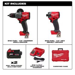 🧰🛠Milwaukee M18 FUEL Brushless Hammer Drill/Impact Driver Combo Kit w/(2)5.0Ah Batts/Case-LIKE NEW!-$325!🧰🛠 $325Irving, TX