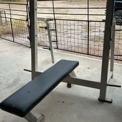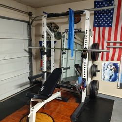 Bench rack and 100 lb weight set gym equipment weights set bench press barbell COMBO$245Harlingen, TX