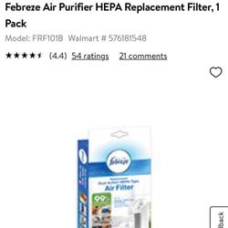 Febreze Air Purifier HEPA Replacement Filter, 1 Pack$8Brownsville, TX