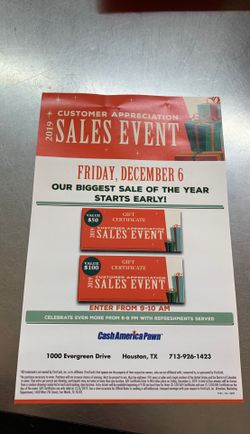 CASH AMERICA SALE DECEMBER 6TH$1,000Houston, TX
