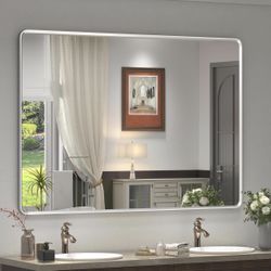 GOLOMO 48x32 Inch Silver Bathroom Mirror For Wall, Silver Metal Framed Mirror, Rounded Rectangle Mirror, Beveled Border, Anti-Rust, Shatterproof (Hori$80Houston, TX