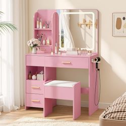 Vanity Desk with Mirror and Lights, 35'' Vanity with Storage Stool, 3 Adjustable Lighting Makeup$149Houston, TX