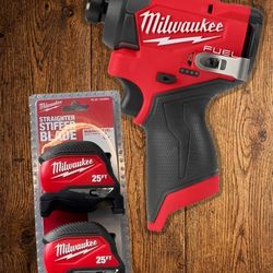 NEW Milwaukee M12 FUEL Impact Driver & 2-Pack 25ft Tape Measure Set$115Houston, TX