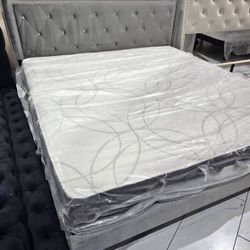 NEW IN BOX- King Size Grey Platform Bed Frame with rhinestone$169Houston, TX