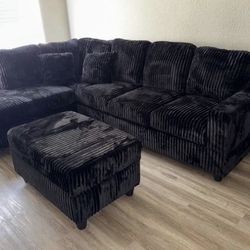 (NEW IN BOX) Black Cord Sectional With Cup Holder And Free Ottoman -FINANCE AVAILABLE$599Houston, TX