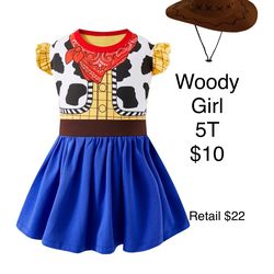 Woody Girl Dress Costume Toy Story Western Cowgirl 3T & 5T Halloween / Disfraz de Vaquera$10Houston, TX
