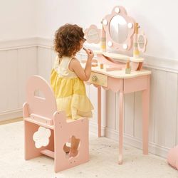 Kids Vanity Table and Chair Set with Lights, Makeup Vanities with Touch Screen 3 Colors, Pink Girls Vanitys, Enough for Real and Pretend Makeup, Toddl$99Katy, TX