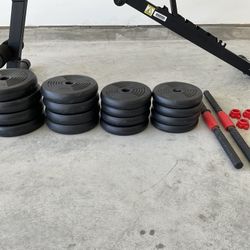 EZ Curl Bar & XMark Rubber Coated Weights 95 Lbs. READ BELOW. FIRM PRICE $180Houston, TX