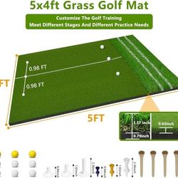 Golf Mat with Dual Turf, 5x4ft Heavy-Duty Golf Hitting Mats Practice Outdoor/Indoor, Elite Dense Artificial Thickened Green Turf Matt Training Aid for$110Katy, TX