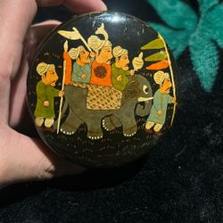 vintage hand-painted Kashmir papier-mâché lidded trinket box. $85Houston, TX