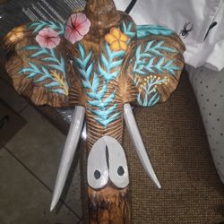 Earth bound Hand carved floral painted elephant head$30Houston, TX