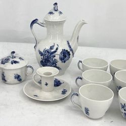 Royal Copenhagen Blue Floral Porcelain Tea Set 10 Piece Teapot Cups Saucers$200Houston, TX