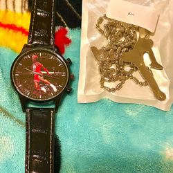 NEW AUTH NBA BULLS MICHAEL JORDAN LITHO COLOR DIAL REAL LEATHER HOT PIECE ASK $100 FIRM CHP $100Houston, TX