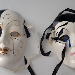 2 Jack Logan Hand Painted Ceramic Masks Vtg Mardi Gras Golden Black White Signed$21Houston, TX
