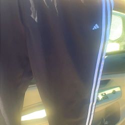 The product is a pair of vintage Adidas Tearaway Track Pants for men in size XL. These wide-leg pants feature a striped pattern with snap buttons and $80Houston, TX