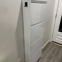 Slim Metal Shoe Cabinet – Modern Flip Storage (White)$100Houston, TX