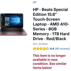 HP Beats Special Edition 15.6” Touch Screen Laptop 1 TB Gamer$150Katy, TX