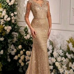 long sequined dress, sheer sleeves Size L$40Houston, TX
