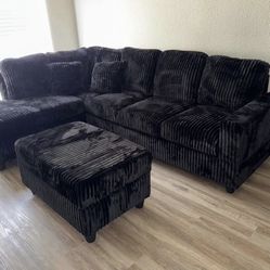 (NEW IN BOX) Black Cord Sectional With Cup Holder And Free Ottoman -FINANCE AVAILABLE$699Houston, TX