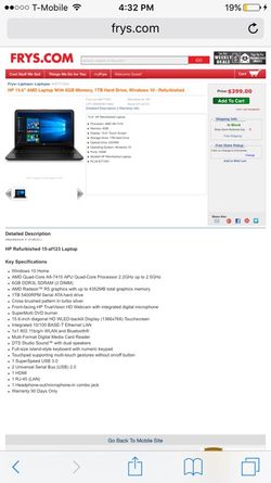 HP Pavilion 15 Touch Intel Core i7-7500U CPU 2.70GHz 2.90 GHz12.0 GB 1TBHD$199Pearland, TX