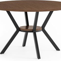 Round Dining Table for 4, 42.5'' Farmhouse Wooden Kitchen Table with Storage Shelf, Space Saving Circle Dinner Table, Rustic Kitchen & Dining Room Fur$140Katy, TX
