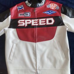 white and red leather race jacket$20Houston, TX