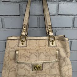 Vintage Coach Signature Tote Bag Beige Gold Canvas Leather Turnlock Purse$59Houston, TX