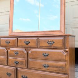 Salem Square Custom" heavy wooden Vintage solid wood dresser 9 drawers dresser chest with mirror 59L19D32 1/4"H /$300Katy, TX